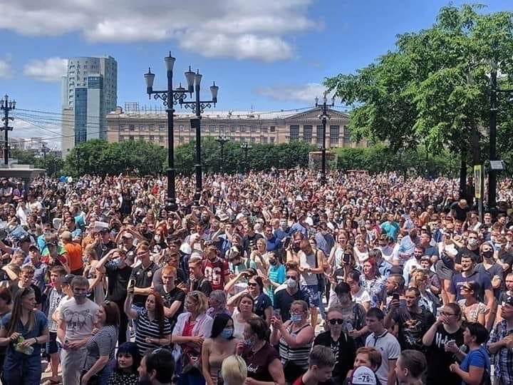 В Хабаровске 18 июля десятки тысяч человек вышли на акцию в поддержку Сергея Фургала.