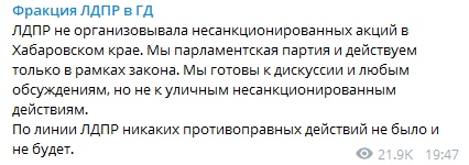 "Хабаровский край — после того, как его возглавил Фургал — стал для АП очень неудобным регионом: ну где это видано, чтобы рейтинг губернатора не просто был выше президентского, но — гораздо, неимоверно, так, чтоб счёт шёл не на проценты, а на десятки? «Хабаровский край открыто и электорально посылал Кремль куда подальше. Победа Фургала в 2018 году, полная победа ЛДПР на региональных выборах в 2019-ом, провал кремлевских норм и цифр по явке и голосованию на конституционном „обнулении“, а главное — системное и тотальное унижение „Единой России“, там в думе нет ни одного единороса.https://svpressa.ru/politic/article/270581