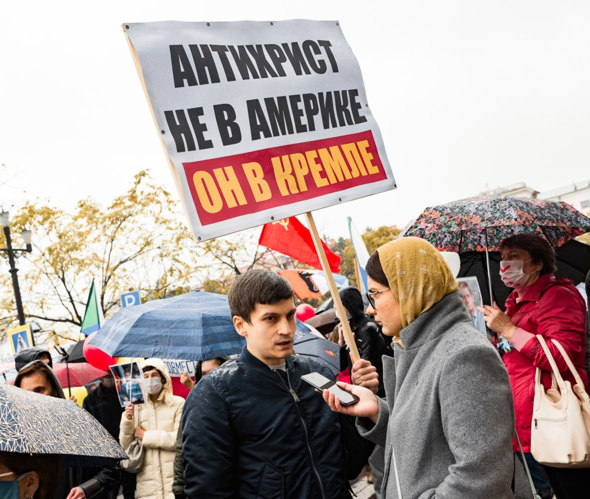"Антихрист – не в Америке. Он в Кремле". 13-я протестная неделя в Хабаровске.