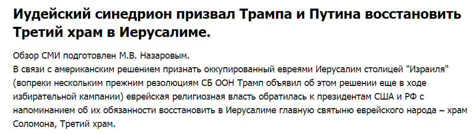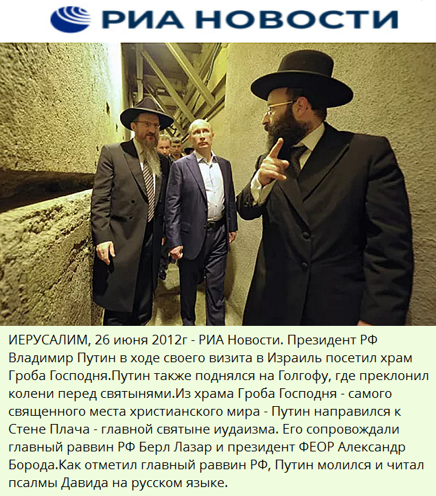 Путин в 2012 г. совершил визит в Израиль, где, надев кипу, участвовал в молитве о восстановлении Третьего храма.
