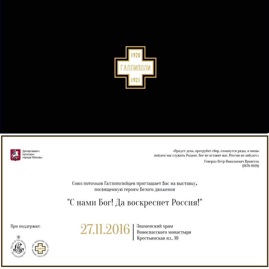 В Новоспасском монастыре с 27 ноября открылась выставка в память о русских эмигрантах, чинах Белых армий в Галлиполи, Лемносе и Безерте. одним из организаторов экспозиции является Союз потомков Галлиполицев и Александр Ростиславович Колчак – внук адмирала и Верховного Правителя России Александра Васильевича Колчака и потомки других белогвардейцев. На выставке впервые представлены редкие фотографии и письменные артефакты из частных архивов, а также семейные реликвии.