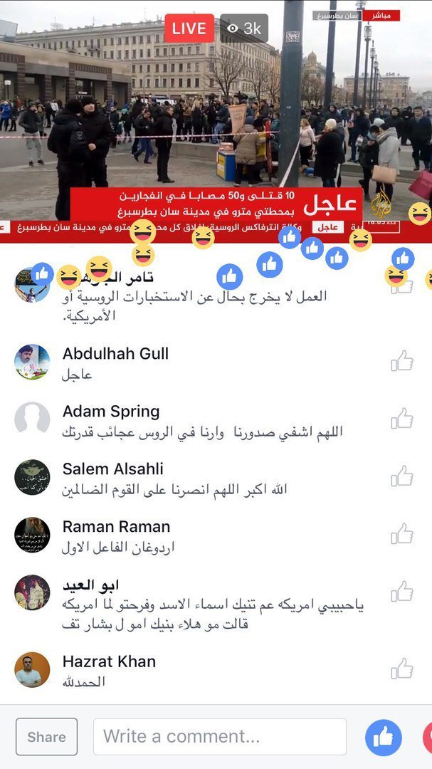Трансляция «Аль-Джазиры» от вестибюля станции метро в Санкт-Петербурге, где произошел теракт. Радость зрителей (чурок-муслов) не передать словами.