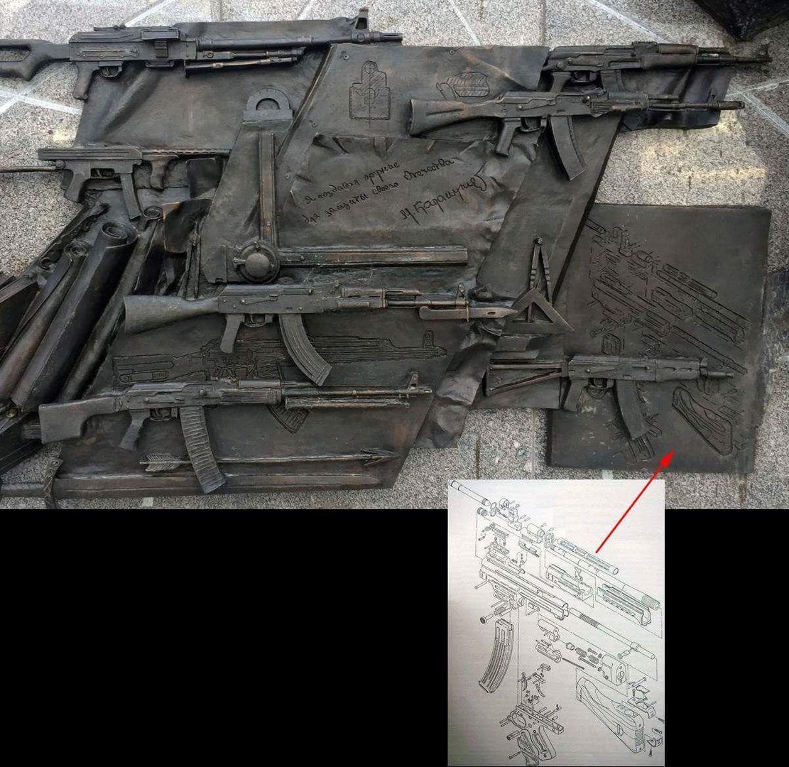 В случае с памятником Калашникову дополнительный комизм в том, что, во-первых, перед нами монументальное произведение искусства (а не открытка к празднику), во-вторых, очень плохое произведение искусства (ну реально «солнцевский» какой-то, даже если бы Калашникова просто одели в военный мундир, уже все выглядело бы в разы приличней), а в-третьих, произведение искусства от придворного скульптора Салавата Щербакова, до этого изваявшего святого Владимира на Боровицкой площади (напрочь убившего вид на Кремль). То есть вот этот вот небрежный гугл (притом что памятник курирует Мединский и РВИО, можно позвонить, спросить) — он уже не от безымянных мальчиков и девочек, а от гранда путинской архитектуры, человека, которому поручают изготовление ключевой монументальной пропаганды (каждый раз — очень плохой).