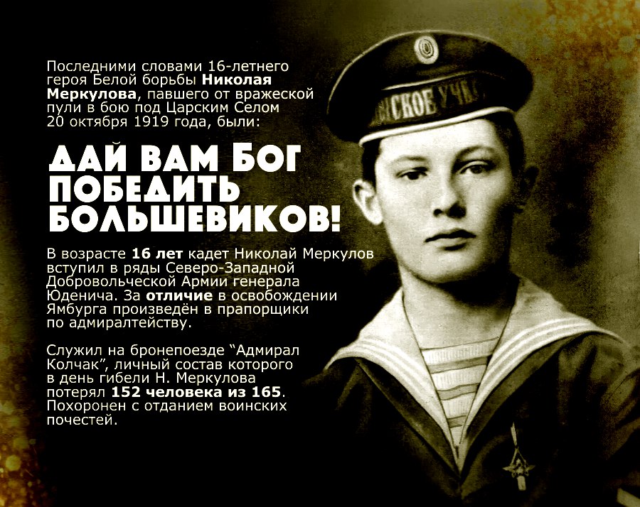 Как сказал недавно командир Сводного Офицерского генерала Маркова полка капитан Глеб Алексеевич Яковицкий: «Что может наладиться в стране, пока хоть один русский человек – спустя сто лет – повторяет кощунства про “кровавого Николашку”?»(“Николай Кровавый”– это слова Путина)