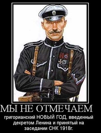 Так называемый «Новый год» по Новому стилю – это по большому счету отличный тест для каждого ныне живущего русского на принадлежность к русской нации. – Скажи мне, что ты празднуешь, и я скажу кто ты. Это с одной стороны.