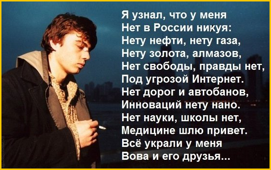 Но не благодаря твоим усилиям по нашему ограблению, а вопреки. И развивать Россию будут не чиновники, не реестровые козляки и байкеры, не твои сослуживцы по КГБ, а презираемые и ограбляемые вами “креаклы” (инженеры, ученые, технологические предприниматели).