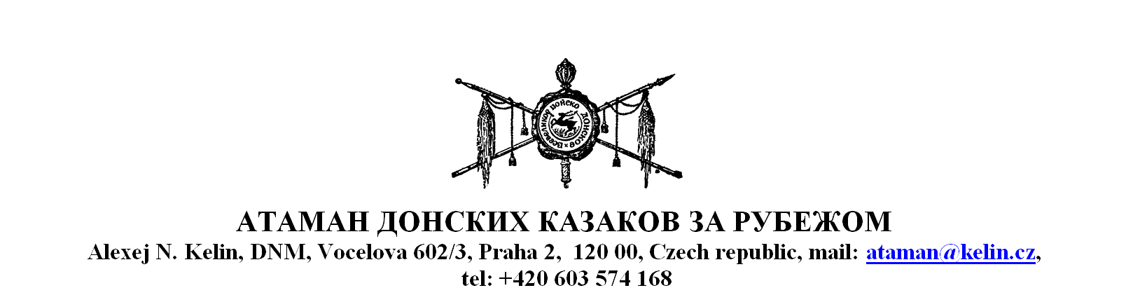 В воскресение 16 декабря 2018 мне в Праге передал Евгений Николаевич Исаак Мартынюк, представитель Донского Атамана ВВДз в Германии и Австрии, приказ Атамана ВВДЗ Ярополка Леонидовича Михеева, № 8, которым я стал его преемником.