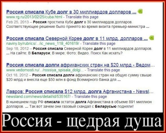 Простить другим странам $140 млрд? Легко! Помочь Африке, Сирии и друзьям-олигархам? Без вопросов! Щедрость России поражает. Но как насчёт миллионов нуждающихся в помощи в НАШЕЙ СТРАНЕ?