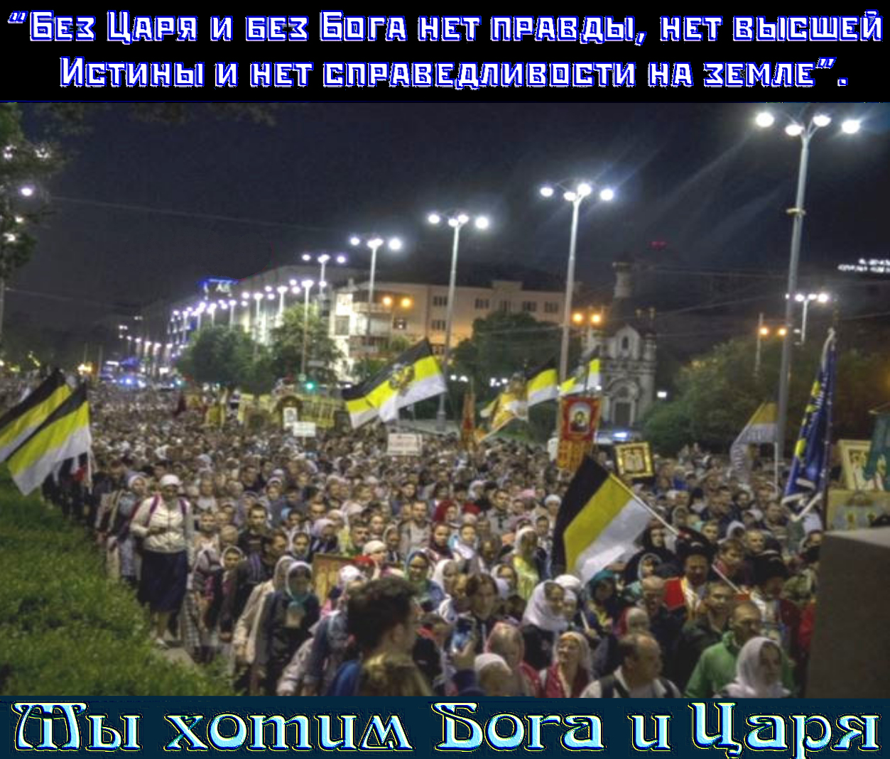 «Теперь, если мы хотим спасения и возрождения России, то должны всемерно стремиться к тому, чтобы у нас опять был Самодержавный Царь, Помазанник Божий, который, как душа Русского народа, возродит Россию, и она опять сделается великой и славной на страх всех её врагам, на счастье своего народа». Святитель Серафим (Соболев)