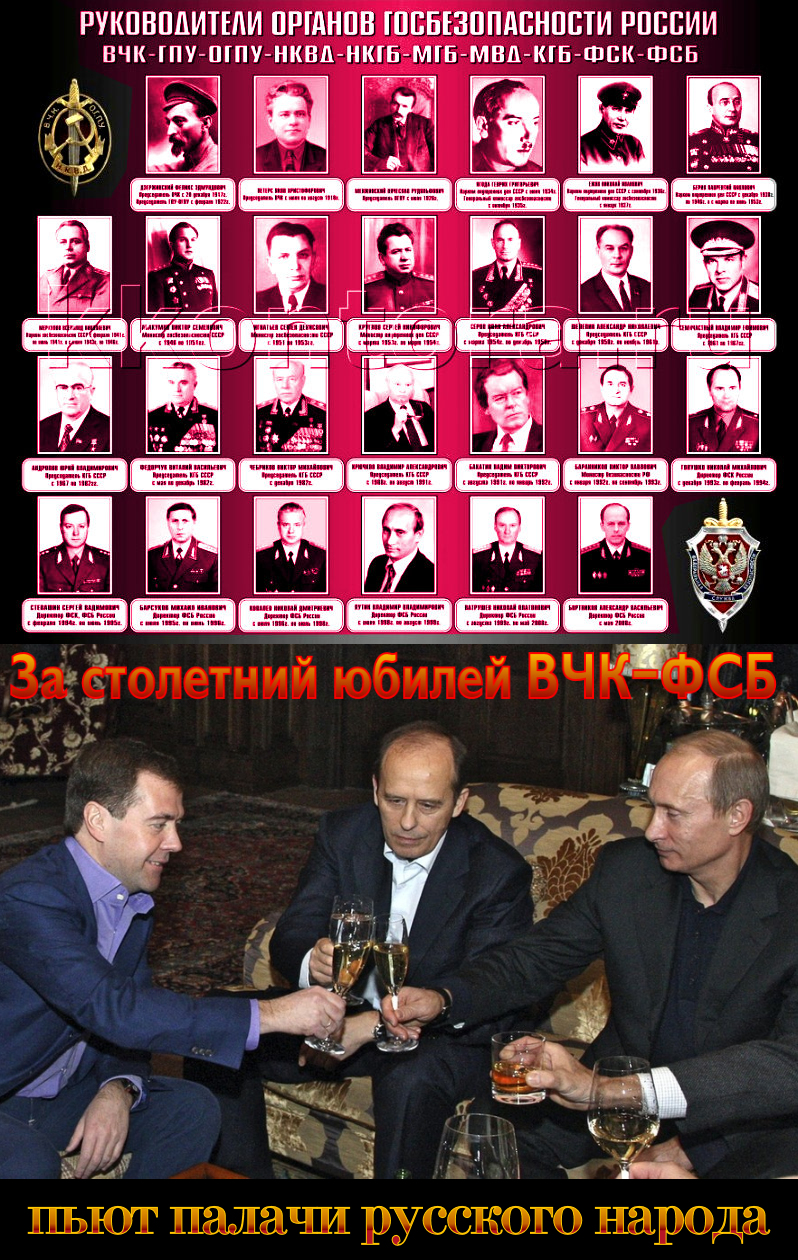 Если правители РФ считают нынешнее ФСБ “достойной преемницей” тех советских карательных служб и их “подвигов”, то стоит ли удивляться тому, что западная русофобская пропаганда охотно использует эту преемственность для обвинения РФ в отравлениях Литвиненко и Скрипаля (тем более, что последняя западная информационная атака с раскрытием имен “солсберийских туристов” осталась с российской стороны без должного объяснения, просто решили “гордо молчать”, ‒ что честных патриотов России наводит на грустные мысли…)