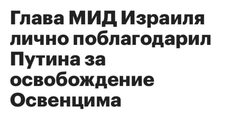 У России и Израиля, несмотря на демонстративную амнезию некоторых других стран, единая позиция: историю Второй мировой нельзя ни забывать, ни переписывать, из прошлого можно делать только выводы.
