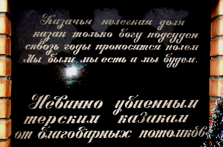 Использована статья "История репрессий Терского казачества" Эдуарда Бурды, кандидата исторических наук, автор ряда книг по истории Северного Кавказа и Терского казачества.