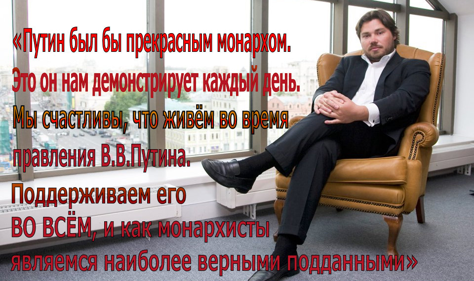Вот так нагло и цинично лжёт Малофеев. Истинные монархисты прекрасно понимают, что Путин является служителем и угодником того самого змия, который уже 100 лет душит Русь и Русский народ. Как лжет Малофеев и о том, что Россия встала с колен.