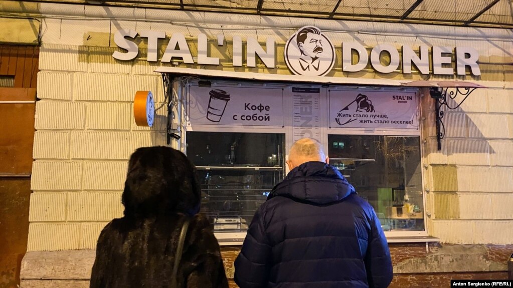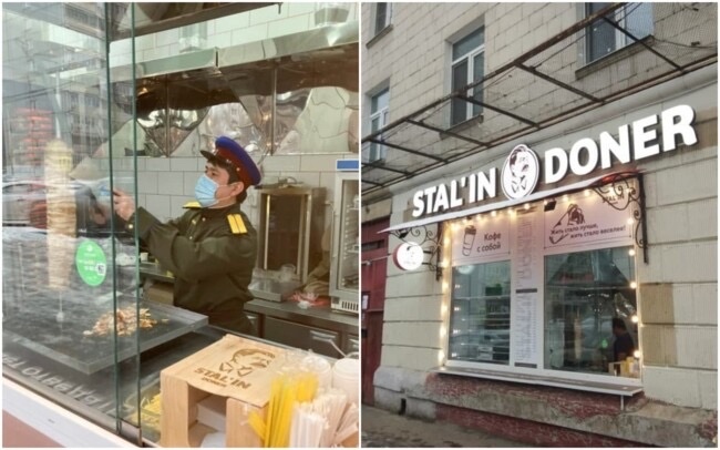 В Москве открылась закусочная «Сталин Донер». Одетый в форму НКВД продавец раздает шаурму «Сталинская с двойным мясом» и «От Берии с соусом ткемали». Упаковка с узнаваемым усатым лицом и лозунг по прилавку «Иосиф Виссарионович предлагает отведать»!