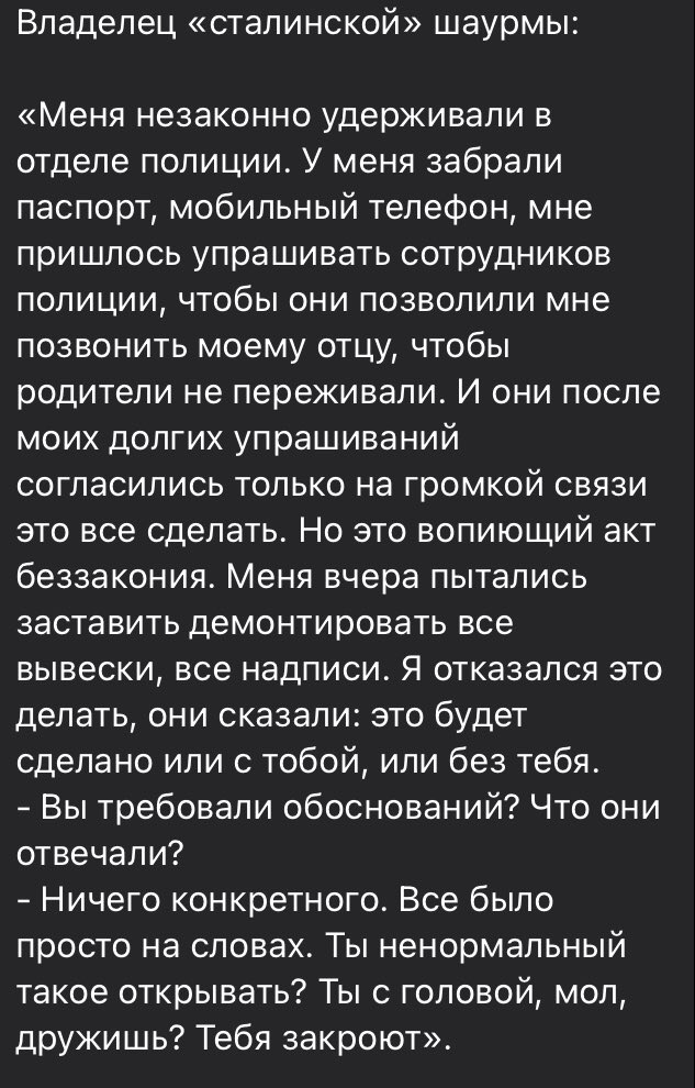 Как я и думал, полиция пришла в сталинскую шаурмешную из-за формы.