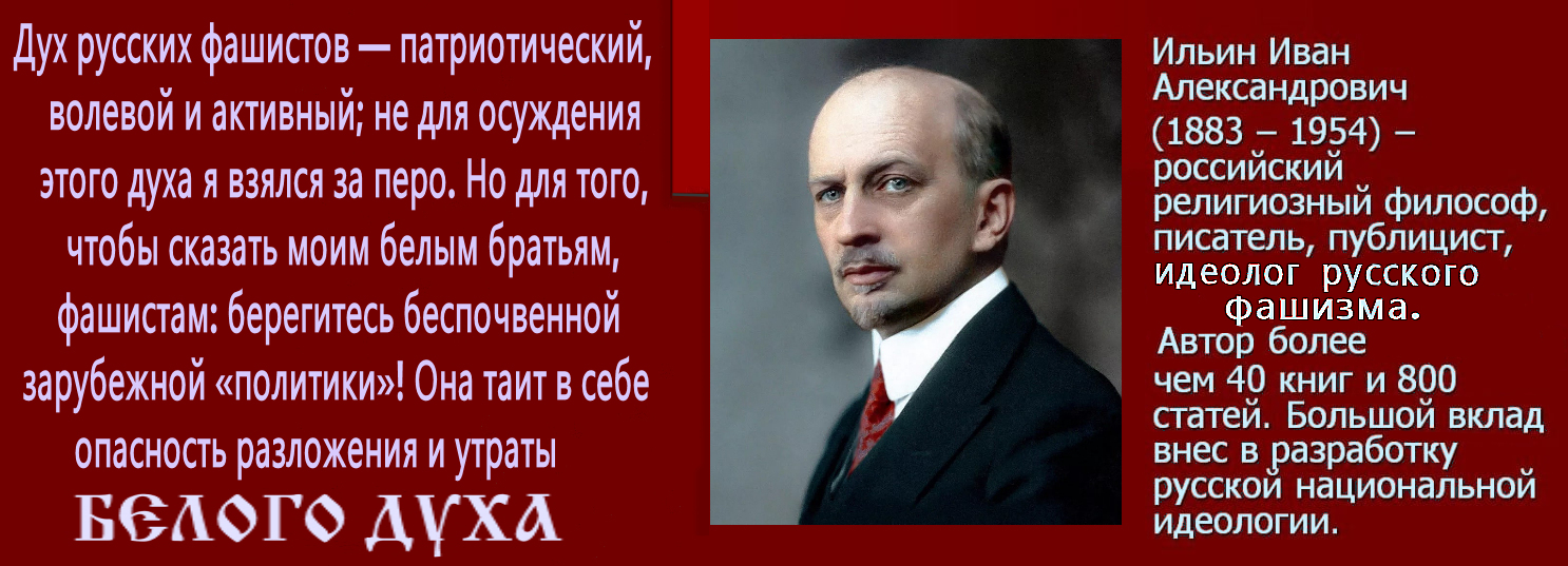– Зря Иван Ильин переживал, что русские фашисты перестанут быть Б☦лыми и потеряют Б☦лый Дух и Б☦лую Идею. Мы казаки-б☦лофашисты ИКС, твёрдо уверены в том, что "Без Царя и без Бога нет правды, нет высшей Истины и нет справедливости на Русской земле" и считаем, что "Самое дорогое у человека – это жизнь. Она даётся Богом ему один раз, и прожить её надо на светлой Б☦лой стороне Руси, чтобы не было мучительно больно за бесцельно прожитые годы, чтобы не жёг позор за подленькое, кр✭сносовецкое прошлое, и чтобы, умирая, смог сказать Господу: вся жизнь и все силы были отданы самому прекрасному в мире – б☦лофашистской борьбе за возрождение Самодержавной Монархии в России".