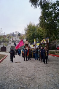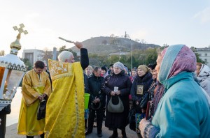К двум часам дня на горе Митридат собрались участники шествия. Для молящихся большой радостью стало то, что крестный ход возглавили пять священников: протоиерей Николай Зиньков, иереи Алексий Якушев, Алексий Бутенко, Георгий Васецкий и Вадим Поляков — такого количества духовников нельзя было увидеть даже во время 90-летия Русского Исхода.