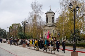 Присутствующими была пропета «Вечная память». Здесь же, у бюста праведному воину адмиралу Российского флота Ф. Ф. Ушакову, был пропет тропарь святому.