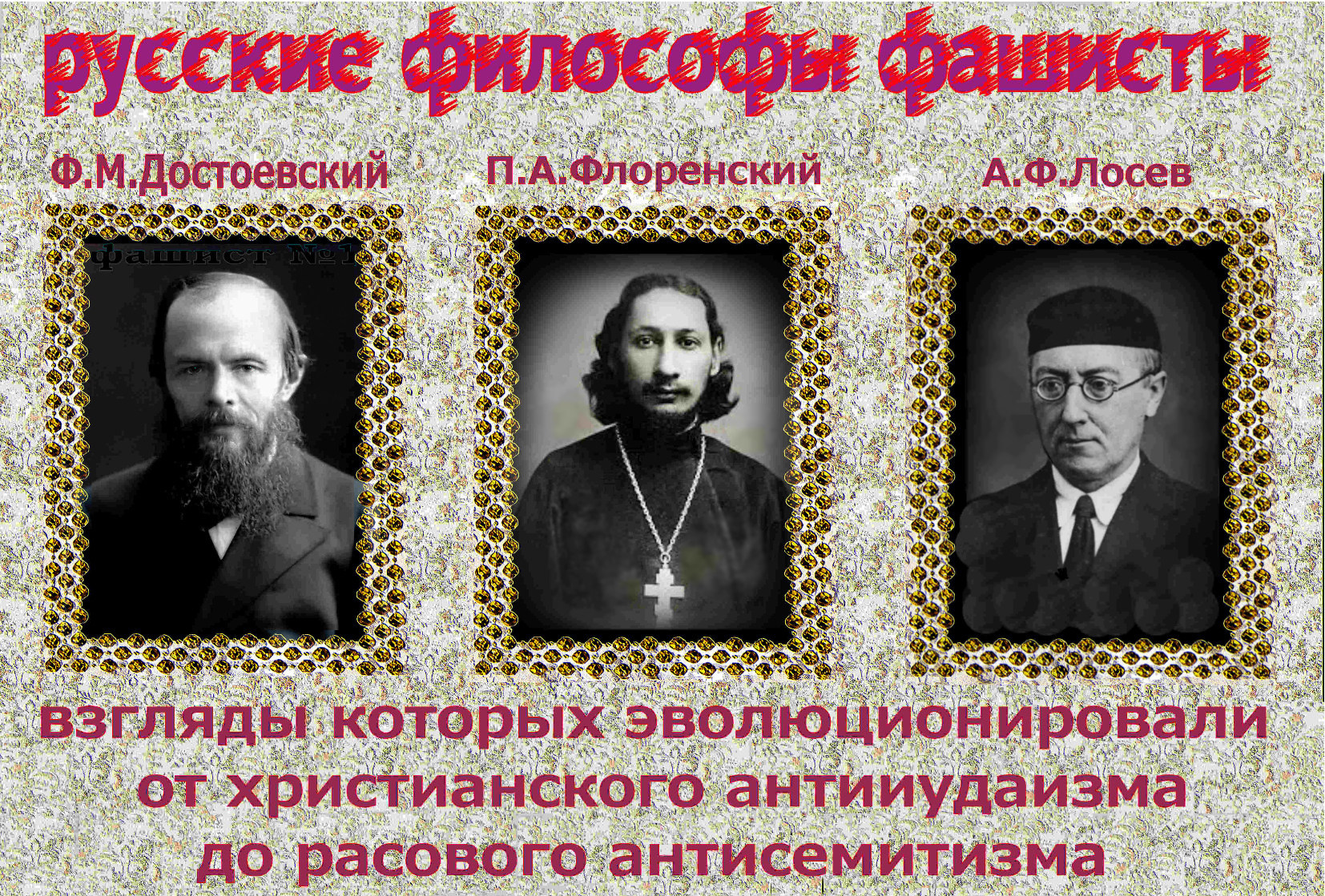 – Зная отношение к евреям философов-фашистов Ф.М.Достоевского, П.А.Флоренского, А.Ф.Лосева.