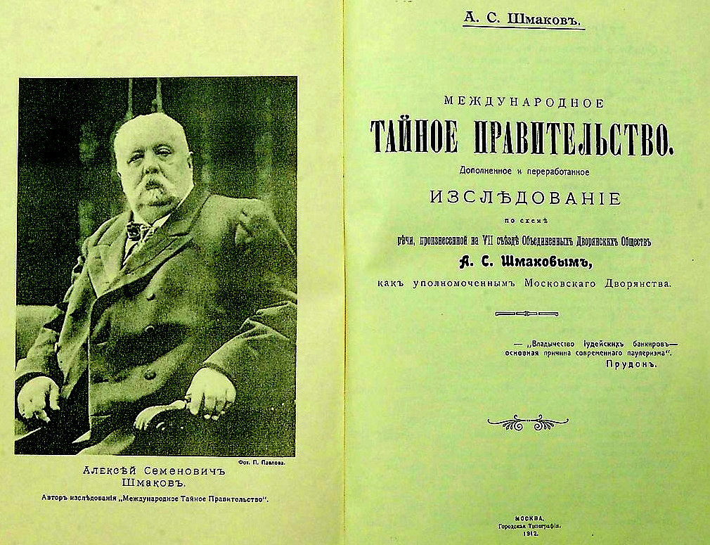 ШМАКОВ Алексей Семенович (1852-1916) – русский правовед, общественный деятель и публицист. Присяжный поверенный Московской судебной палаты. Автор многочисленных исследований и статей по еврейскому вопросу и масонству. Сотрудничал с Русским Собранием и Союзом Русского народа. Выступал одним из истцов по ритуальному убийству, совершенному Бейлисом в Киеве.