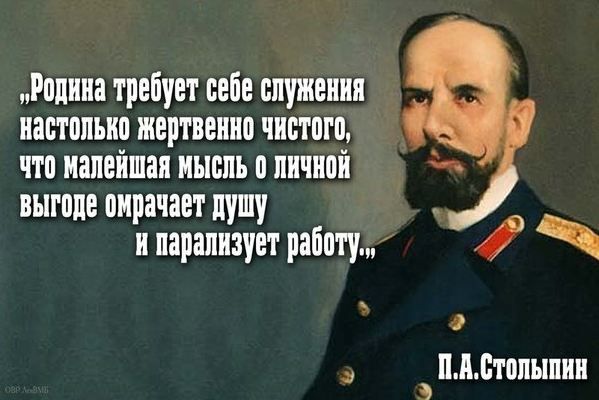 Известно, что В.Путин крайне высоко ценит заслуги П.Столыпина как исторического деятеля. Летом 2011г. он посетовал на то, что заслуги премьера были “незаслуженно забыты”, и предложил министрам возвести памятник на личные средства. Да и самые известные заявления П.Столыпина, такие как “Им нужны великие потрясения – нам нужна великая Россия” и “Дайте государству 20 лет покоя, внутреннего и внешнего, и вы не узнаете нынешней России”, звучат в унисон заявлениям нынешних первых лиц.При этом эти лица забывают другое знаменитое заявление Петра Аркадьевича.