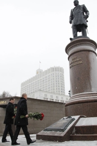 Президент Владимир Путин и нынешний глава правительства Дмитрий Медведев посетили открытие памятника, возложив к нему цветы. В церемонии также приняли участие члены кабинета министров, собравшиеся ранее в Белом доме на последнее в этом году заседание правительства.