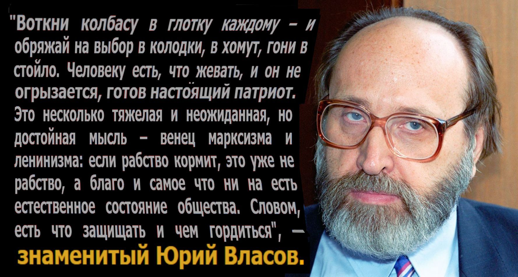 Это несколько тяжелая и неожиданная, но достойная мысль – венец марксизма и ленинизма: если рабство кормит, это уже не рабство, а благо и самое что ни на есть естественное состояние общества. Словом, есть что защищать и чем гордиться…