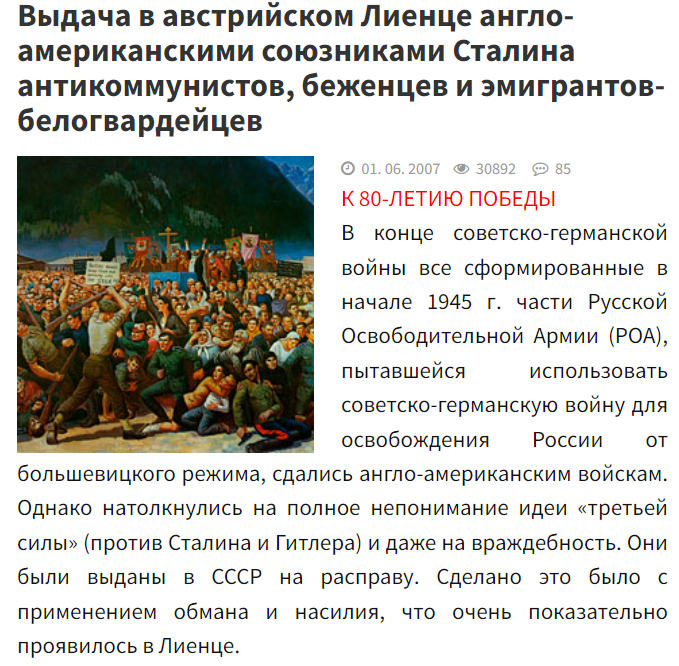 Сегодня первого июня – День памяти русских казаков, подло выданных в 1945 году большевицкому режиму его англо-американскими союзниками в Лиенце и Юденбурге (Австрия).
