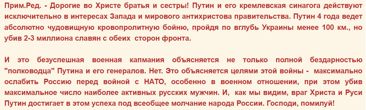 – Да кто бы сомневался: жид-геноцидник Русского народа Путин, американских жидов вполне устраивает, как устраивали их и жид Ленин и жид Сталин, геноцидники Русского народа.