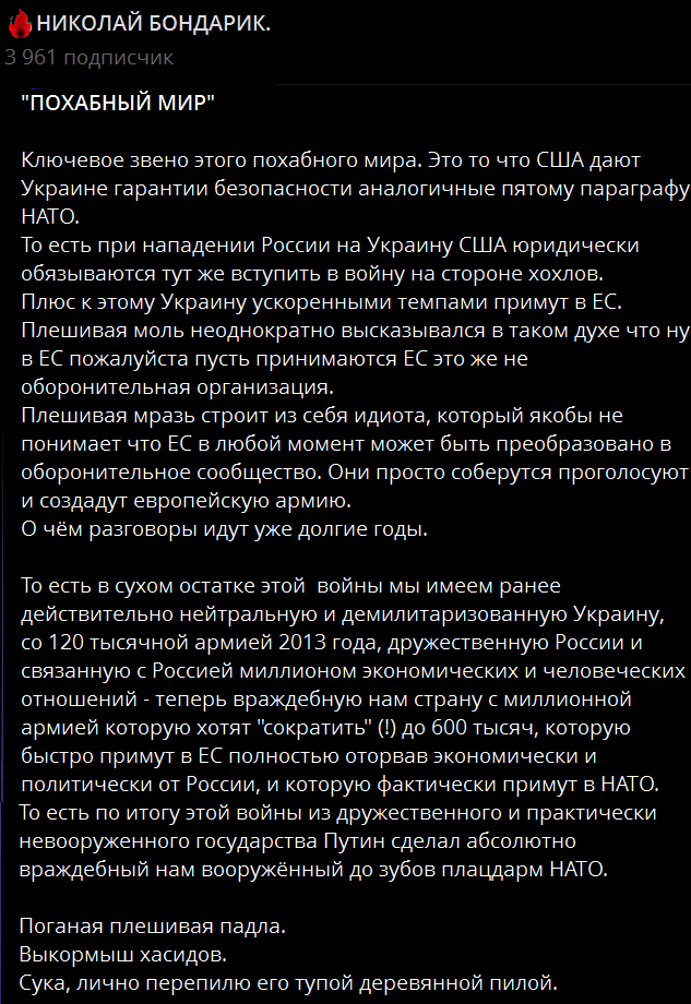 «МИРНЫЕ ПЕРЕГОВОРЫ. ДЛЯ ✡️НИХ✡️ – ЭТО СДЕЛКА. ДЛЯ ☦НАС☦ – ЭТО ЖИЗНЬ. ЖИЗНЬ ☦РУССКИХ☦».