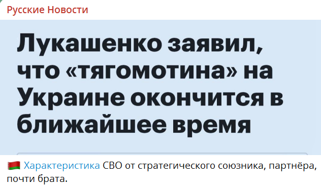 «Закончим эту ТЯГОМОТИНУ в Украине в ближайшее время». Лукашенко — о прекращении СВОйны.