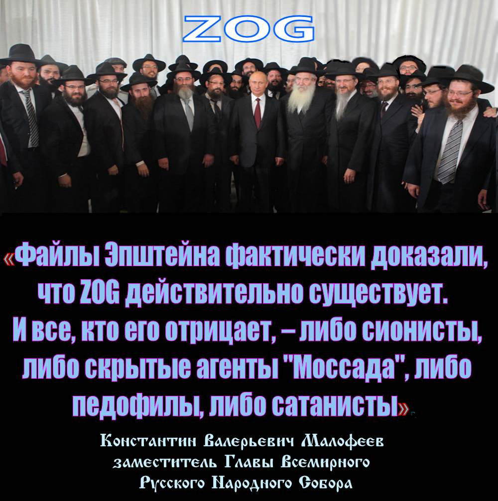 Файлы Эпштейна фактически доказали, что ZOG действительно существует. И все, кто его отрицает, – либо сионисты, либо скрытые агенты "Моссада", либо педофилы, либо сатанисты.