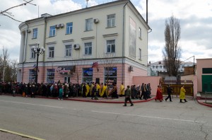 Духовенство и миряне вернулись в центральный городской собор. Трудно вспомнить, когда ещё на общегородские мероприятия и крестные ходы собиралось так много священнослужителей и царило такое единодушие. Безусловно, способствовало этому учреждение Керченско-Феодосийской кафедры и назначение на неё митрополита Платона, который с первых же дней принялся за укрепление единства православных приходов города. И прошедший крестный ход стал тому свидетельством. Сам митрополит, несмотря на преклонный возраст, подавал всей пастве и духовенству достойный пример ревностного служения Богу. Утром владыка служил Литургию в Иоанно-Предтеченском соборе, а затем возглавил крестный ход, пройдя весь его путь, протяжённостью 4 километра, и поддерживая единодушное пение молитв. Звучные голоса архиерея и служащего при нём протодьякона Николая увлекали за собой остальных молящихся.