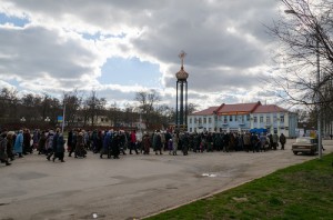 От звонницы верующие начали обратный путь по улице Пирогова, и, остановившись напротив церкви великомученицы Ирины Цареградской, сонм священником пропел величание этой святой.