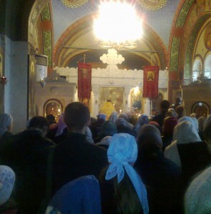 Литургию провел иерей о. Дмитрий, в церкви при Ливадийском дворце, построенном этой династией. По окончанию Литургии, присутствующие казаки и верующие с Крестом, Хоругвиями и иконами выстроились в колонну для прохождения Крестного Хода.