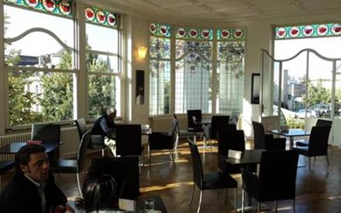 Современный видъ ресторана бывшей гостиницы «Сесиль», гдѣ «красная собака» Воровскiй нашелъ свой постыдный конецъ.