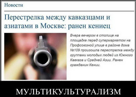 «Средняя Азия» говорит и учится. Проповедует Ислам. Рожает и растит террористов. Не забывая при этом получать пособия на детей. На языке пришельцев все действия властей РФ означают для них лишь одно: ты слаб. А слабость на Востоке — это что? Правильно, порок, за который наказывают. И вежливость — проявление слабости. Идея мультикультурализма — это идея бессилия. Если тебя обижают и ты не даешь сдачи, то не стоит потом свои слабости выдавать за добродетель. Никто не поверит. Закончится тем, что ваххабиты построят свою систему образования,как в Дагестане, по всей эРФии . Ислам почувствовал, что в нашей стране нет хозяина, и начинает хозяйничать.
