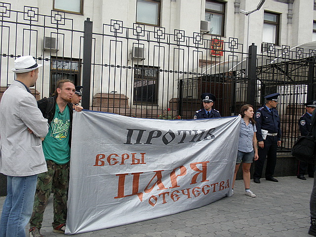 Парень, который на входе в Александровский сад рекламировал экскурсии по городу, попросил футболку – он тоже был против госпропаганды «монархических ценностей». Мы подарили её и пошли думать о следующих акциях…
