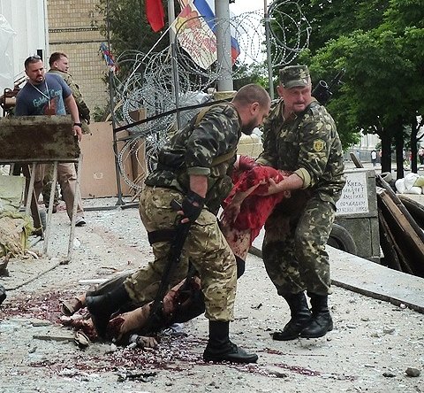 Ни на ком из погибших нет ни оружия, ни камуфляжа, это немолодые женщины, для боевых действий непригодные чисто физически. Украинцы тут же начали врать, что в здание Луганской ОГА попала зенитная ракета, выпущенная ополченцами и захватившая «тепло кондиционера» (!!!), но после демонстрации остатков неуправляемой авиационной ракеты С-8КОМ были вынуждены заткнуться. При этом некоторые украинские патриотические СМИ, не успев получив директивы из центра, выдали в прямой эфир всё как есть: