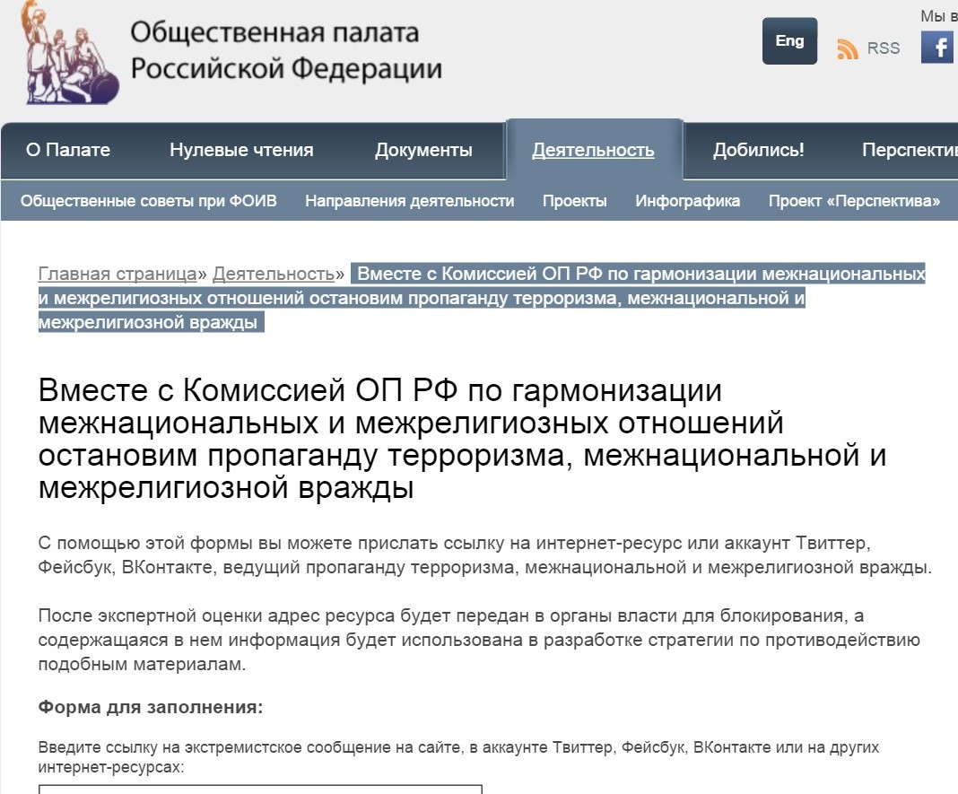«Отсутствие адекватной реакции на размещение экстремистских материалов в международной компьютерной Сети со стороны органов государственной власти, призванных бороться с любыми проявлениями экстремизма и разжигания национальной и межэтнической розни, культивирует чувства вседозволенности и безнаказанности у лиц, совершающих эти деяния», – говорится в сопроводительных документах, передает ИТАР-ТАСС.