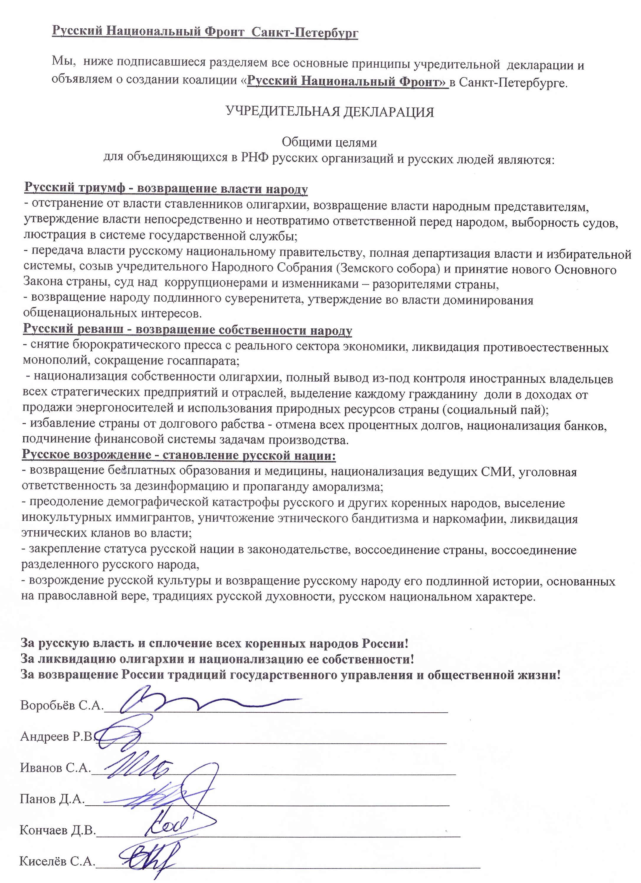 РУССКИЕ НАЦИОНАЛИСТЫ ОБЪЕДИНЯЮТСЯ И СОЗДАЮТ КОАЛИЦИЮ “РУССКИЙ НАЦИОНАЛЬНЫЙ ФРОНТ СПБ”.