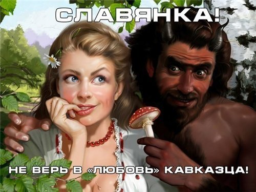 На государственном уровне стали поощрять межнациональные браки, причём в основном за счёт славянских женщин, что даже тогда вызывало непонимание у населения, которого обрабатывали многонациональной пропагандой. Фильм «Свинарка и пастух» является хорошим примером этому. Сюжет там такой: русскую свинарку посылают в Москву на Всесоюзную сельскохозяйственную выставку. Там она встречается с дагестанским пастухом Мусаибом. Но на их пути встает влюблённый русский конюх Кузьма, изображаемый в неприглядном виде. В итоге, свинарка выбирает кавказца. Сюжет межрасовых союзов позитивно обыгрывался и в довоенном фильме «Цирк» и многих других. Но такой же семейный запрет для кавказских и азиатских женщин на замужество с русскими мужчинами нормальной (!) воспринимался советскими властями и обосновывался красивыми традициями восточных народов.
