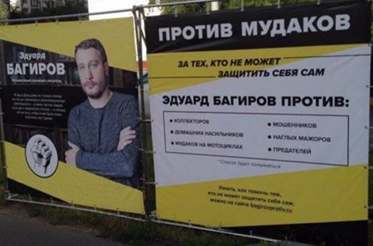 Ресурсная Федерация – это государство, которое не перестает удивлять. В тот самый момент, когда ты говоришь: “Ну кто может быть хуже депутата–жiдовки Яровой? Ну кто?”, оказывается, что гастарбайтер-азербайджанец Багиров зарегистрирован кандидатом в депутаты Госдумы РФ по Тушинскому округу. Учитывая, что ранее Багиров был доверенным лицом Путина на выборах Путина, полагаем, что инициатива на выдвижение в Госдуму пришла сверху. Понятные цитаты будущего депутата (закрывшие бы ему путь в политику в любой минимально демократической стране, это 1% от написанных будущим депутатом мерзостей о России и русских), благодарим “Лентач” за плакаты.